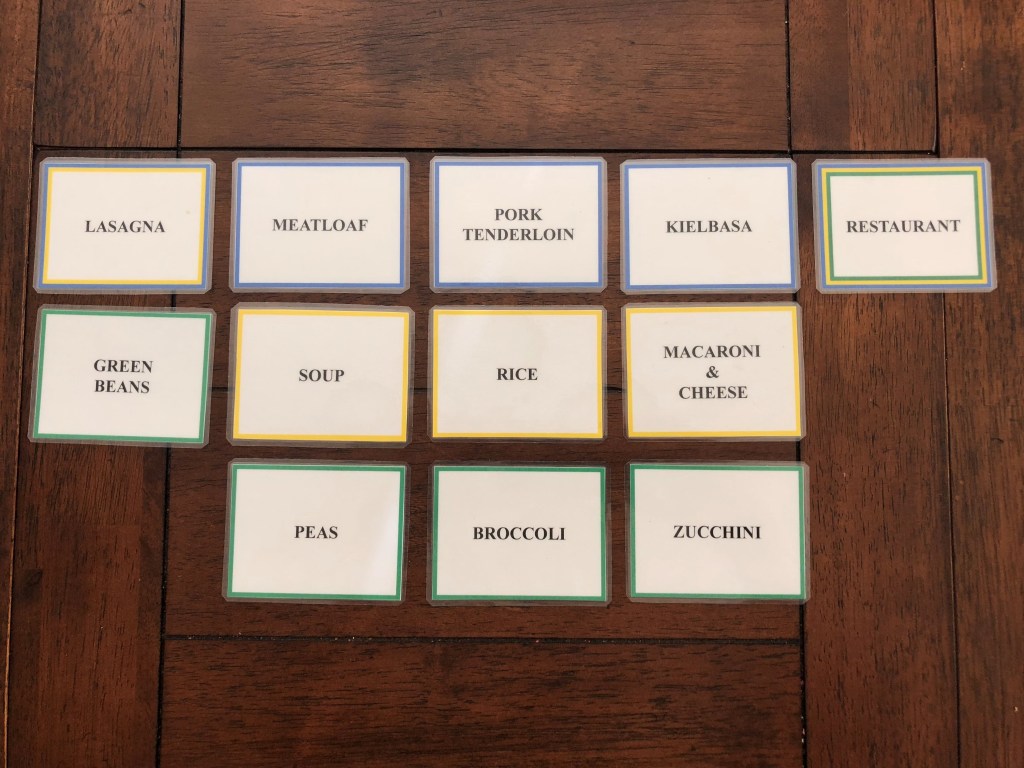 Now that you are thoroughly exhausted from cooking or reading about cooking, you are probably thinking “How in the heck am I supposed to plan for and cook this every night?!?” First of all, you do not have to do this every night. Leftovers can save you some time and still taste amazing, so always cook enough for more than just one dinner (or in case they decide to have seconds or thirds). And it never hurts to throw in a visit to a restaurant once a week to ease your burden (and make someone else do the dishes). Secondly, meal planning and preparation are key to making this work. To aid in this, I created laminated meal cards that represent main meals, side dishes, and vegetables (if anyone is interested, please let me know if you want the full list of cards or the template). I sit down with my girls every Saturday evening, prior to grocery shopping on Sunday, and we plan our next week’s meals together. For each weekday, the girls have to choose one card from each of the aforementioned categories, with some meals, like lasagna, tostadas, or pizza, covering multiple cards. This not only gives them buy-in for what they are going to be having for dinner (and hopefully leads to them actually eating), but it is a fun activity that the whole family can enjoy together. One of our rules is that you cannot use a card twice in the same week, which helps bring more variety to the table and prevents them from saying something like “Broccoli again?” Also, we always cook something new on Saturdays that is not already on a card. This allows the girls to try something new that they may or may not enjoy, with the possibility of them loving it and wanting to add it to the stack of cards. And as I mentioned before about leftovers, we rarely cook every meal on the list in a given week, so we usually already have our Monday meal picked out for the following week.
