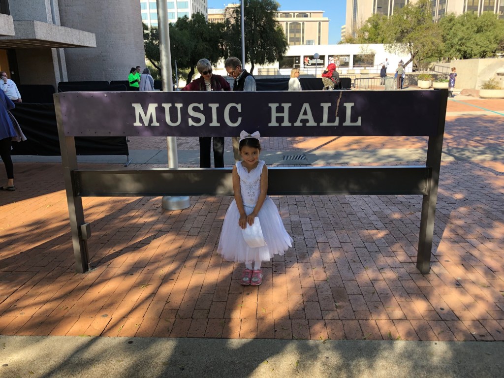 Daddy Daughter Days do not happen as often as they did before, but on the rare occasion that I have a babysitter or family in town, I try to spend some quality one-on-one time with both Elaina and Gabriella. It is an excellent opportunity to bond with your child without sister interference, as they both tend to get frustrated when the other turns Dad’s attention away from them. Elaina is currently enrolled in ballet at her Child Development Center and she mentioned to me a few weeks ago that she really wanted to see the Nutcracker Ballet. Not really sure how she got this idea, but I aim to please. And it seemed like a good activity for a Daddy Daughter Day, which we have not had in a while. I got tickets for The Nutcracker, presented by Ballet Tucson, and Elaina was just ecstatic. She gets to wear a pretty dress and watch real ballerinas in action. I get to spend some quality time with my oldest daughter and broaden my horizons. Talk about a win-win scenario.
