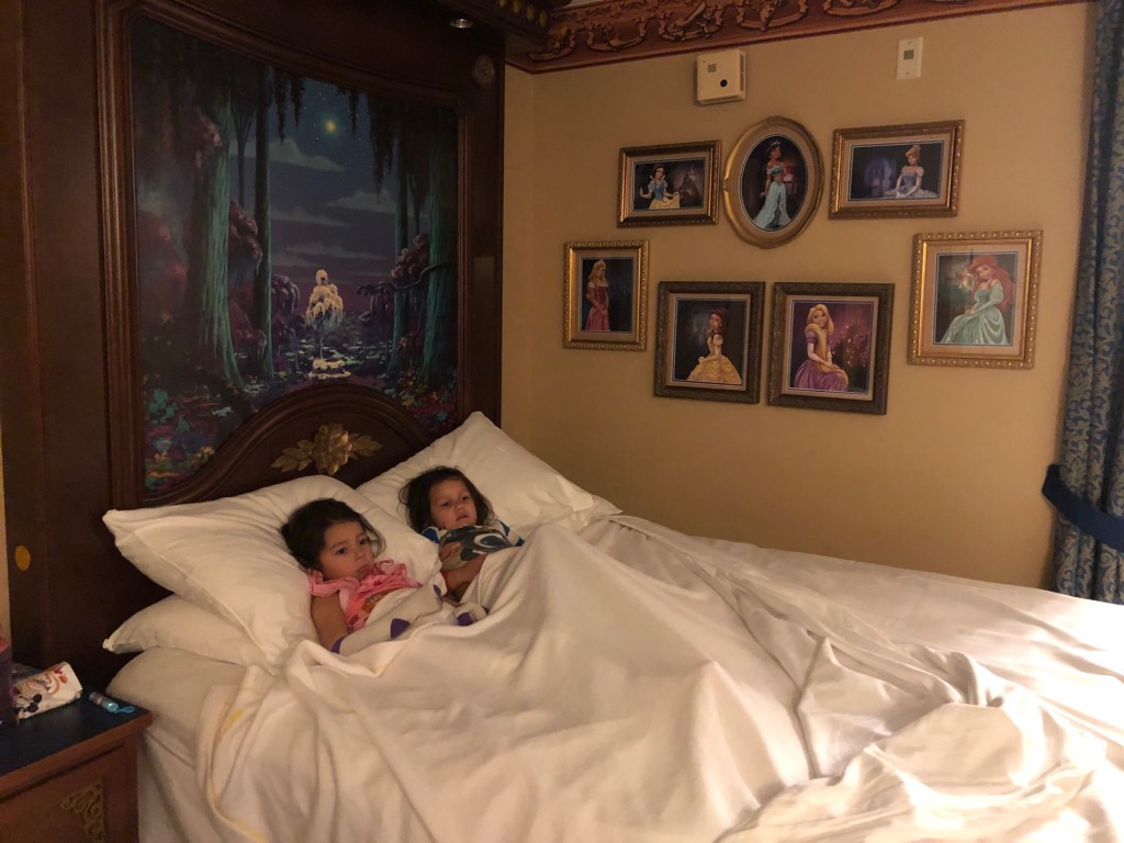 I probably go a little overboard with the backpack prior to flying with the girls, but I would rather be safe than sorry. I simply never want to be that poor parent whose child is crying on the airplane (yet I now completely understand and no longer judge other parents when their child is losing their mind mid-flight, because it happens). The backpack is stuffed to the brim with coloring books, crayons, snacks, candy, hand sanitizer (can you ever have enough?), more snacks (seriously, can you ever have enough?!?), books, and to be used in case of emergencies, the tablet (Amazon Fire) and iPad, already with Netflix and Amazon Prime shows downloaded onto them. The latter came in especially handy given that I had booked us flights with airlines that did not have screens on the backs of the seats. Anyways, even though we arrived at the airport at 2am and our flight for Orlando left at 4am, the girls did amazing and eventually passed out on my lap during both flights.