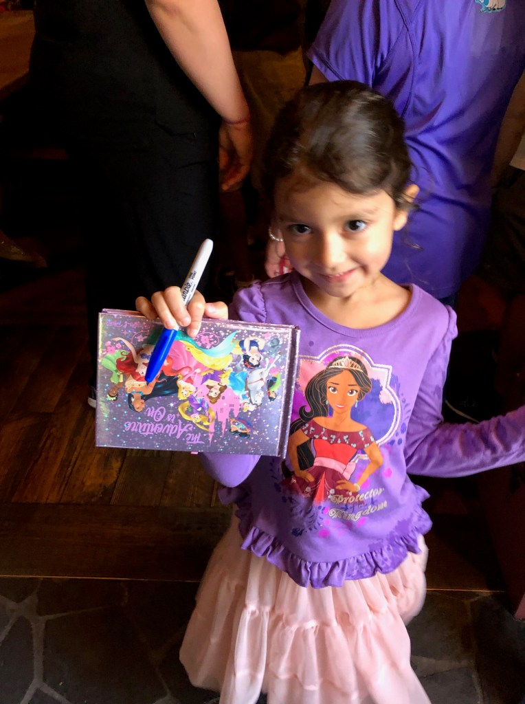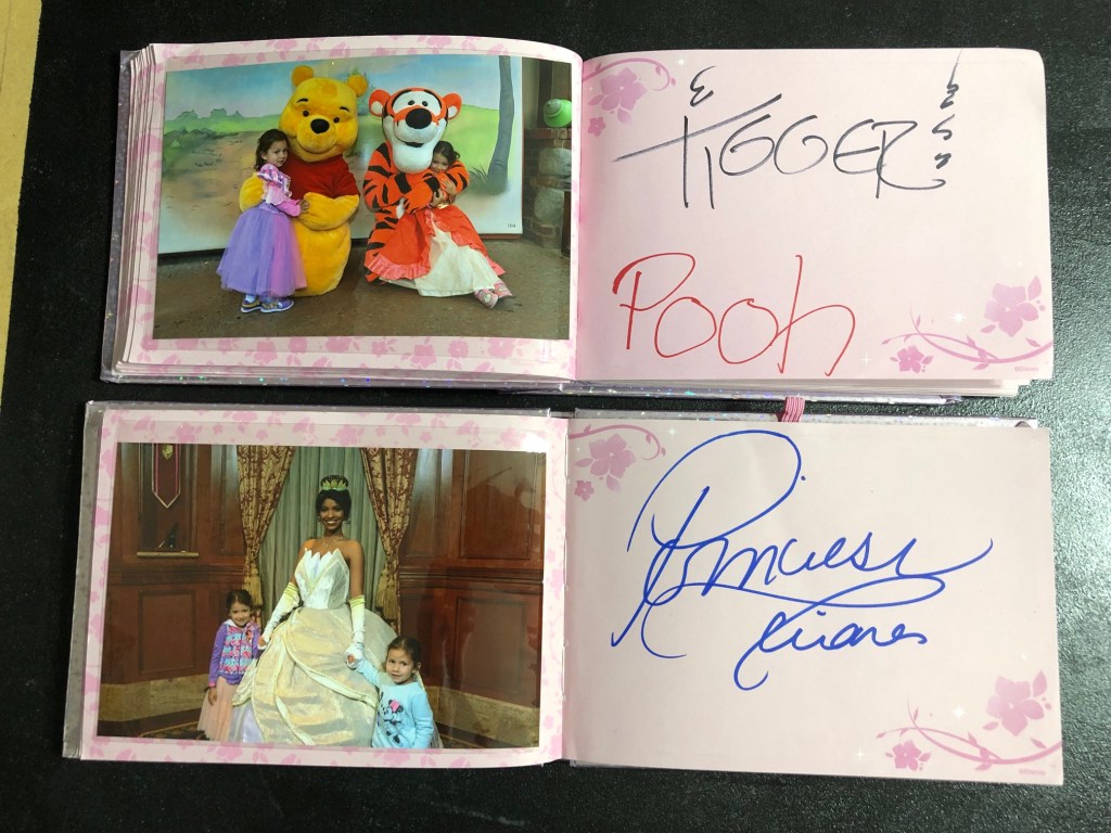 For $15 for each of the autograph books and a few colored Sharpies, this made the trip. The girls almost filled up their books with signatures and we filled the opposite pages with pictures of them with the characters. I was hesitant to get the books at first, but they loved using and looking through them, so I would highly recommend it, especially for younger children.