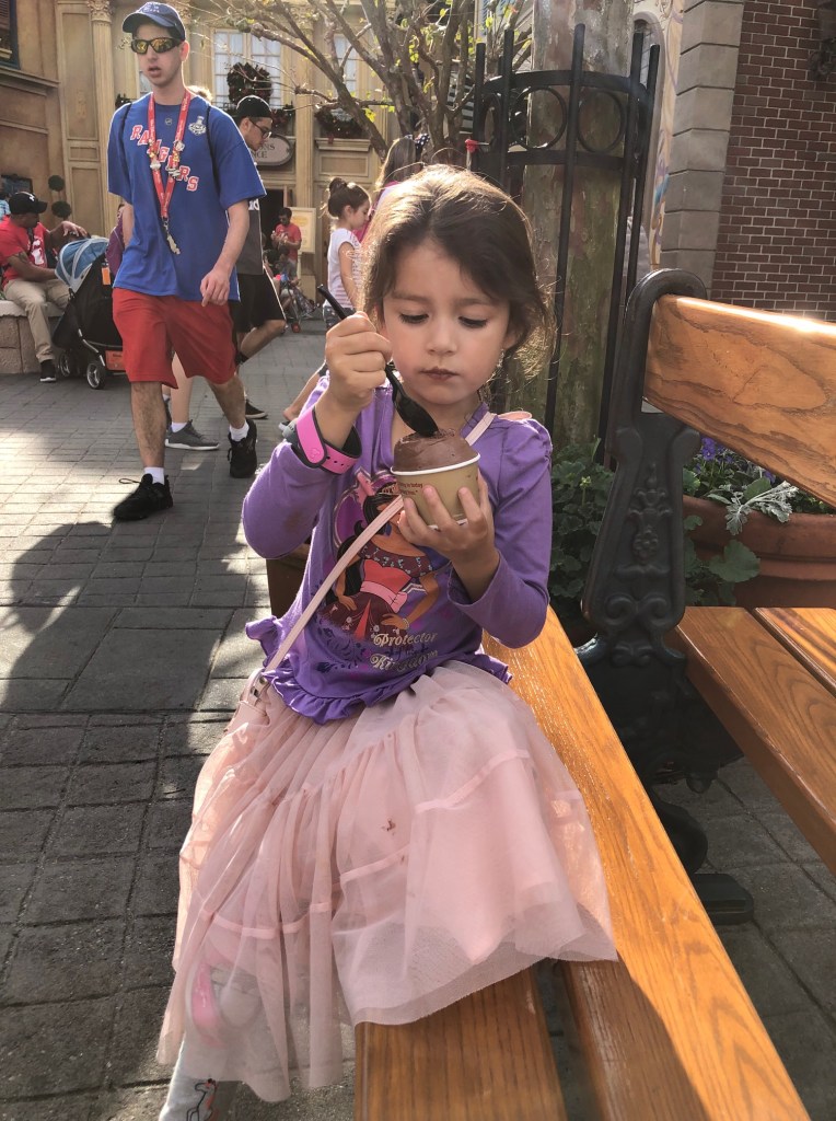 Five- and three-year olds eventually get bored of visiting countries of the world (World Pavilion), looking at fish (The Seas with Nemo & Friends), and playing at essentially a children’s museum (Journey Into Imagination With Figment), so having a park hopper was great. Of course, the girls wanted to go straight to the Magic Kingdom to see their favorite character and to go on some more rides.