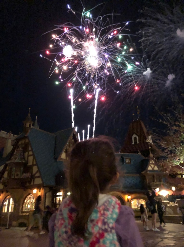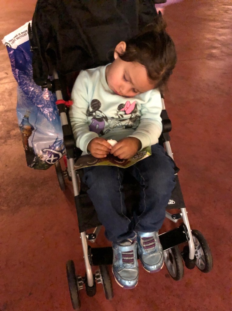 After meeting Elena of Avalor and Rapunzel and going on The Haunted Mansion and It’s a Small World, the girls enjoyed just staying put to watch the fireworks show. A perfect end to a pretty good day (by now I had almost forgotten about the stroller).
