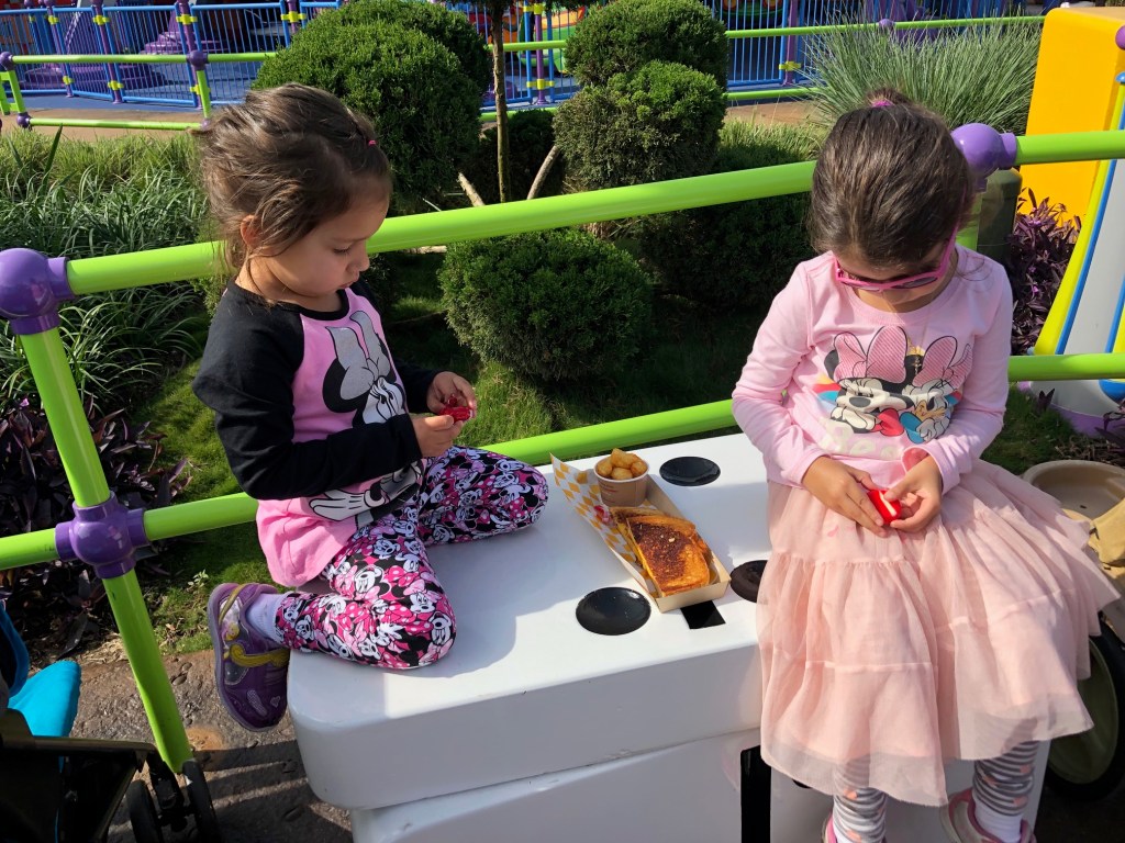 Back to food. Tip #2: When you order quick-serve food for your little ones, order less food (than you normally would) for yourself and make sure you get them something that you will enjoy as well. Chances are that they will only eat about half of their meal, which saves you both money and eating excess calories. For instance, during the above meal, they left me half of their grilled cheese sandwich, which was plenty of food for me (I was also supplementing with Cliff Bars throughout the day).
