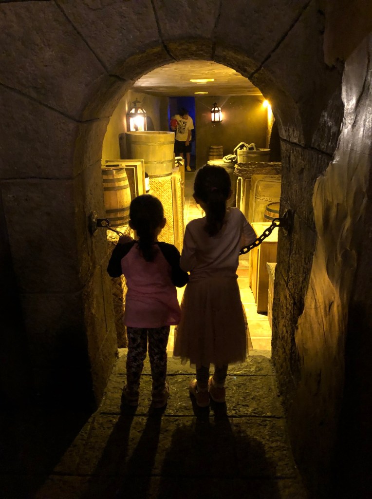 When we were done with Hollywood Studios, we hopped on over to the Magic Kingdom again to knock out a few more rides. This evening’s choices were The Many Adventures of Winnie the Pooh, Pirates of the Caribbean, the Magic Carpets of Aladdin, and of course, The Haunted Mansion (the second of four total times). Just like at Hollywood Studios, the queue lines for these attractions continued to impress me. Set pieces of gold, gunpowder barrels, and muskets at Pirates of the Caribbean. Interactive honey screens at The Many Adventures of Winnie the Pooh. And interactive sarcophaguses and crypts outside of The Haunted Mansion. Heck, even I was having fun with some of these. Just really appreciate it that Disney took the time to make the worst part about a theme park (waiting in line) and made it fun and entertaining for your little ones (that do not like to wait for anything). Thank you.