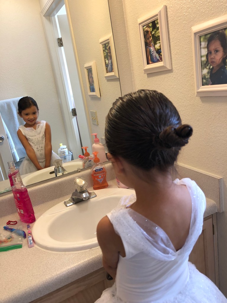 And then this. The “bun” turned out so bad that I have not attempted one since, but this experience taught me a very important lesson: Sometimes my opinion does not matter in the least. Elaina absolutely loved it. I told her that I was still not satisfied with it and she told me “Stop, Dad! It is perfect!” I am not one to mess with perfection. As unhappy as I was with how it turned out, I forgot that the goal was to make her happy, so mission accomplished. Never forget who you are trying to please.