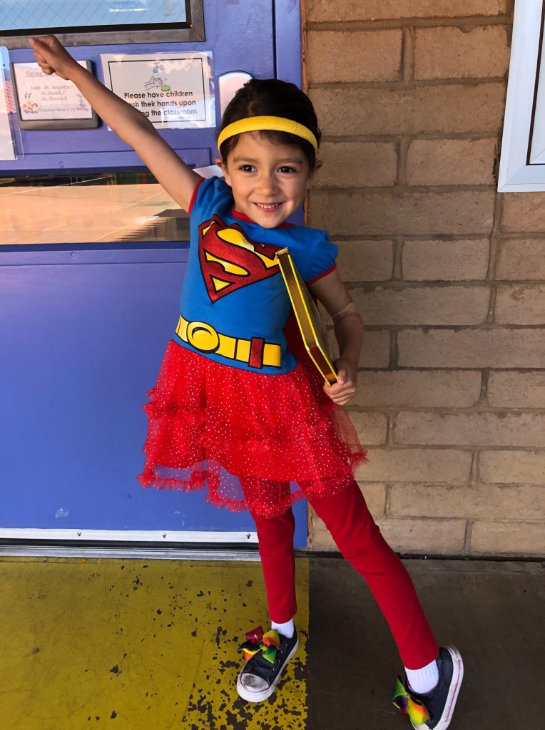 April 3rd was Super Hero Day and you can be sure the girls wanted to go all out for this one. Elaina wore her Supergirl pajamas and brought a Marvel book of super hero stories, such as Spider-Man and Thor. Gabriella wore her Batgirl pajamas (we call her Bat-Gabbs) and brought a DC super hero book teaching shapes and colors. The girls were extra happy because their teachers read both of their respective books during their classes, which started a trend for the rest of the month.