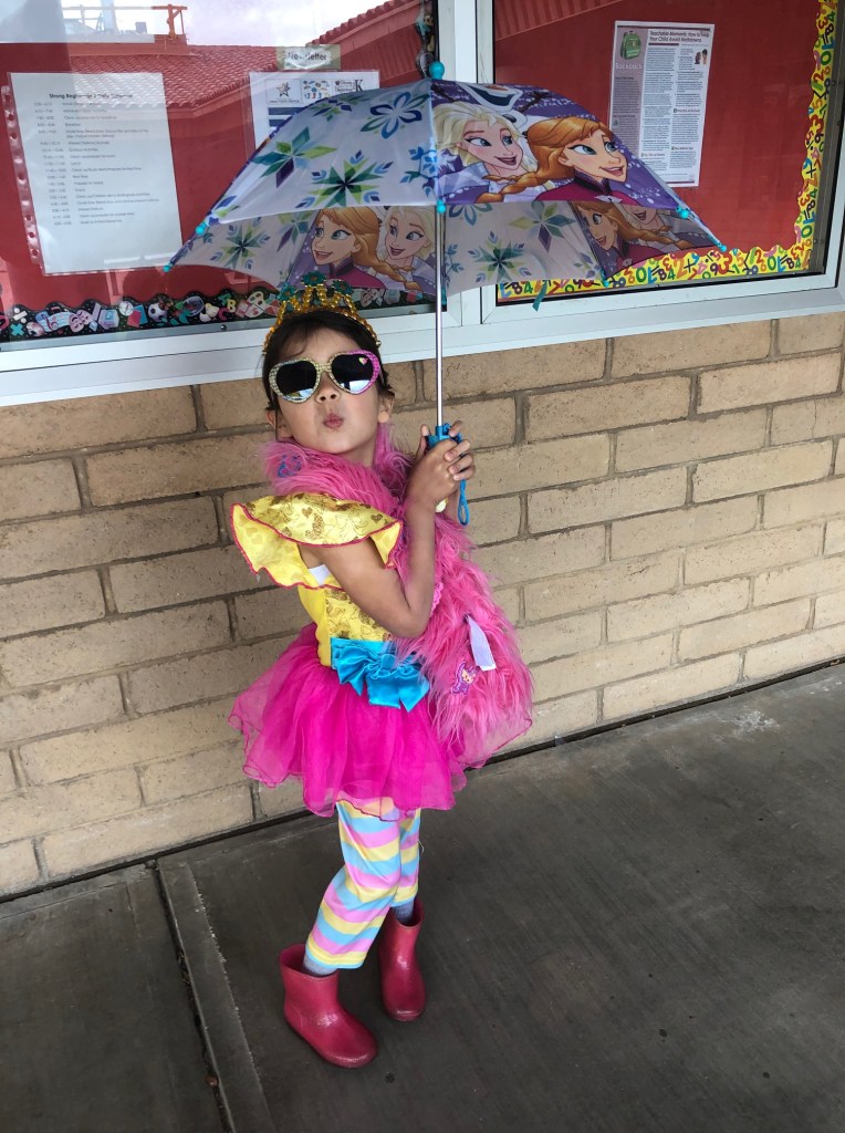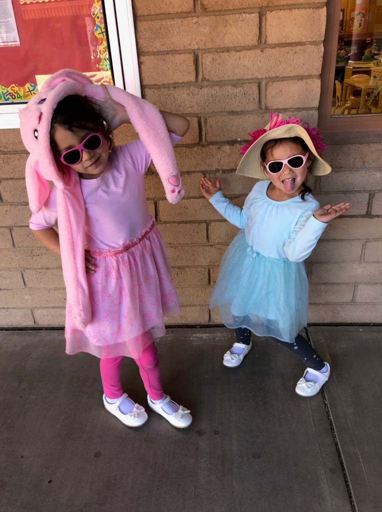 I was really surprised on Wacky Hat/Hair Day as neither of them wanted a wacky hairstyle. It is almost like they knew I just wrote a blog post about this and so they were holding me to a higher standard. Punks. Anyways, they opted for wearing hats, with Elaina choosing a weird bunny hat that her mother got her in Korea (it lights up and you can make the ears wave) and Gabriella going more traditional with a sun hat and glasses. They were also overjoyed to sport their new dress shoes that I have been stocking up for them (RIP Payless Shoe Source). Another great dress up day in the books (and I got to have lunch in Gabriella’s classroom!).