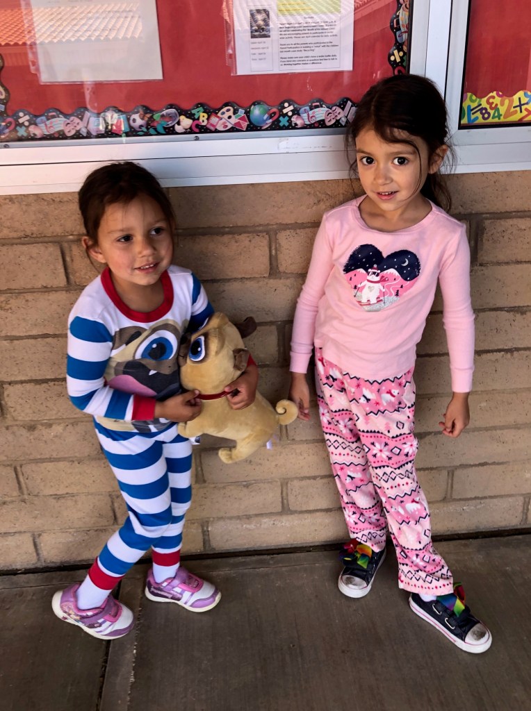 Next came one of their most anticipated days in the month: Pajama Day. Gabriella wore her Puppy Dog Pals pajamas, complete with a matching Rolly stuffed animal (I forgot her Puppy Dog Pals book for the trifecta!). Elaina went with her Christmas pajamas, toting a giant snowman stuffed toy with her. This was certainly one of their happiest dress-up days, but they were initially a little upset with me that they could not just roll out of bed and go to school. I should have articulated to them that it was clean Pajama Day.