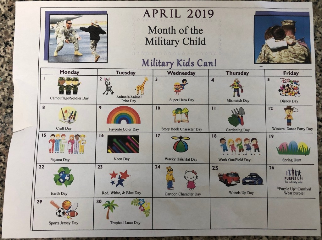 So if you have not figured this out by now, my girls love to dress up. And not just like princesses. They like to come prepared for every possible situation. Given that April is Month of the Military Child on post and that every day promoted different activities, this was the perfect opportunity for them to dress up (“fabulously,” as Elaina puts it) for every day that offered a unique outfit. This became a great family activity every morning by looking at the calendar then going through their closets (and sometimes their playroom) to properly dress for the occasion.