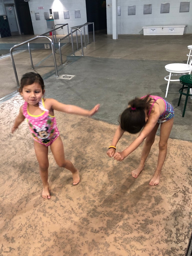 Day Two went a lot better. The girls knew what to expect and were actually pretty excited to get back in the pool. Just let everything else with kids, routine always helps make things easier by being predictable.