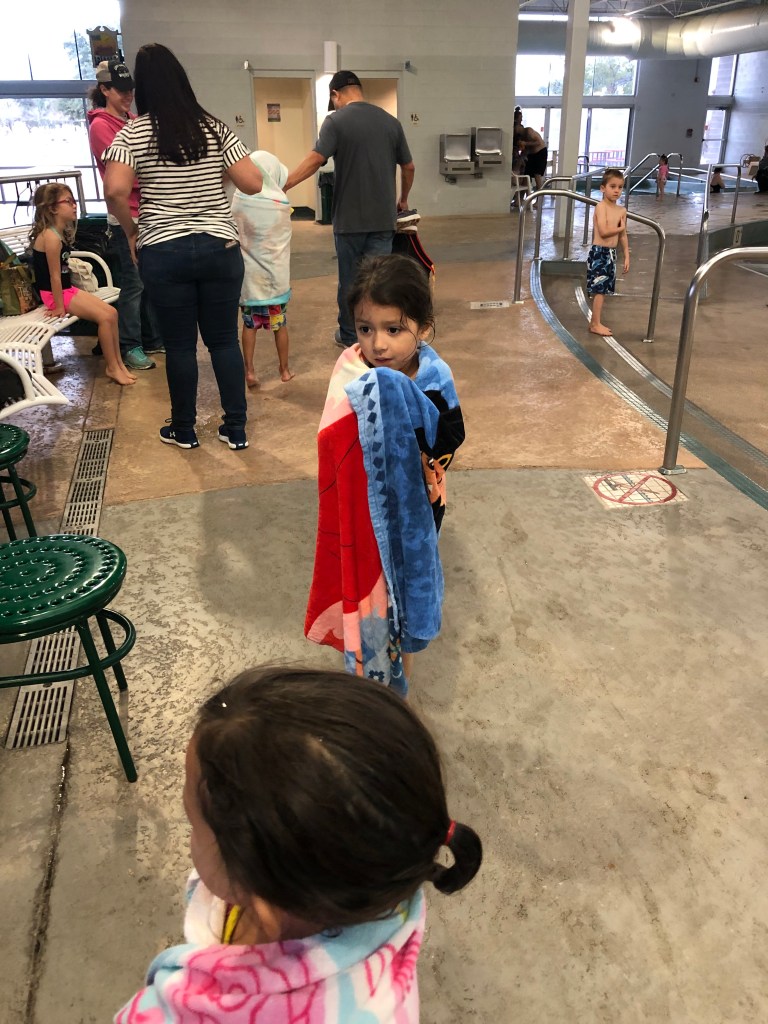 And that is when the crying started. First it was Gabriella. Then it was Elaina. I am pretty sure at one point they were both crying. And all before they had even gotten in water that was higher than their knees. And because they eventually had to learn how to swim, I was stuck somewhere between “You never have to go to this evil place again!” and “Who’s kids are these?”