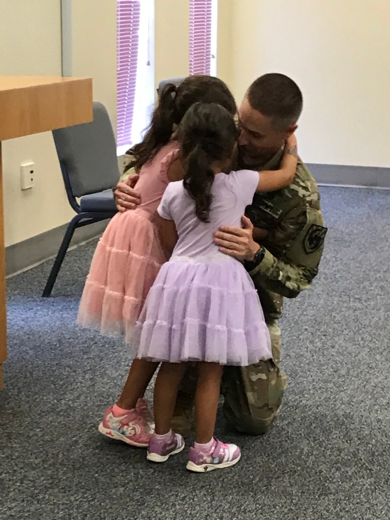 The cliché promotion speech followed. Thanked my superiors, parents, mentors, and co-workers. And then I thanked my girls and told them why I do it. “Everything, from getting up early to do physical training to working hard to help other Soldiers improve, I do for you. Everything I do in my job is to help me to be a better father and to give you a better life. Everything I do in my life is for you.” As per the norm, hugs and kisses followed.