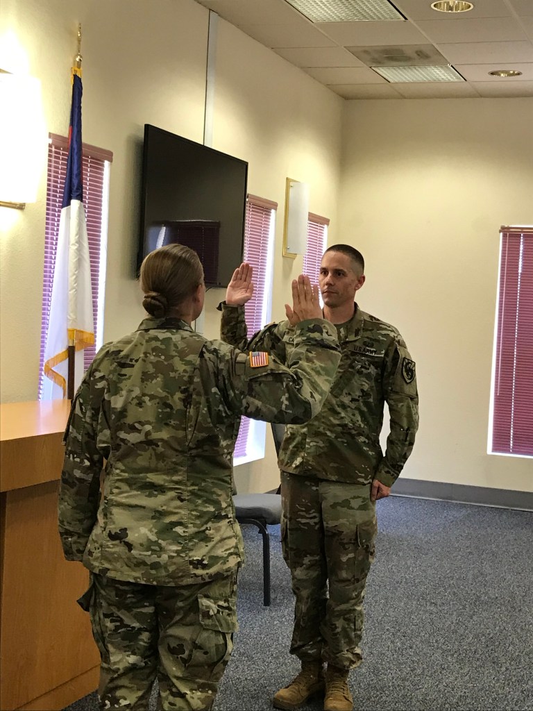 The next part of the event was administering the Oath of Office, which is done every time an officer commissions or moves up in rank. I asked LTC Fearnow to give me the oath, as she had helped to get me promoted and prepared me for my current job.