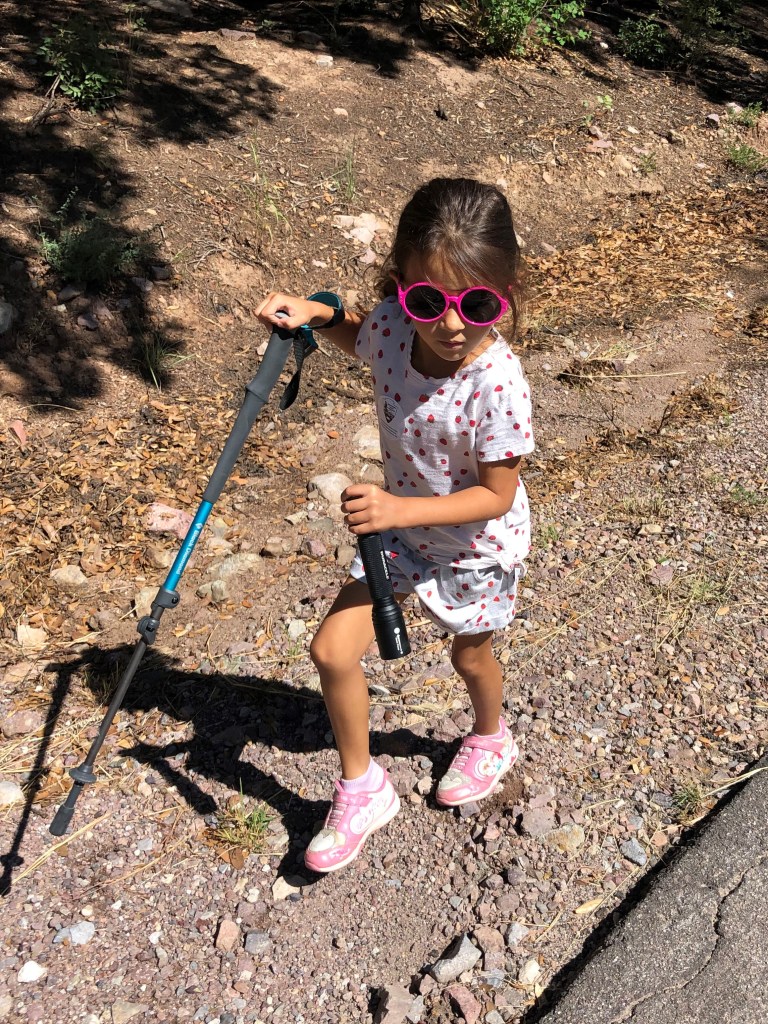 Elaina passed off her walking stick, got in the carrier, and then Gabriella led the way down the hill. We cautiously took our time on the way down to try to prevent Gabby from tripping, falling, and possibly rolling. And there definitely were some areas where I felt more comfortable holding her hand as we walked.