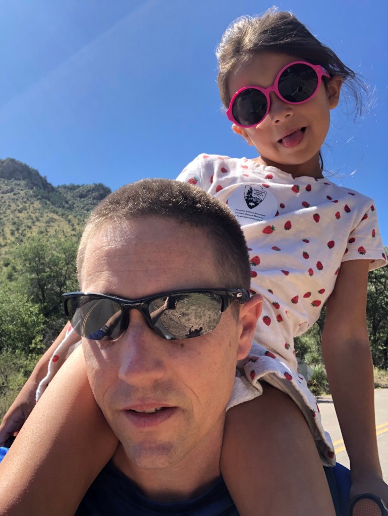 Eventually that happened, and I ended up lugging around 75 pounds of niñas on my back and shoulders. Again, I should expect nothing less when hiking up a pretty steep hill with a six- and four-year old. Even with plenty of rest and water breaks, Elaina was bound to get a little tired.