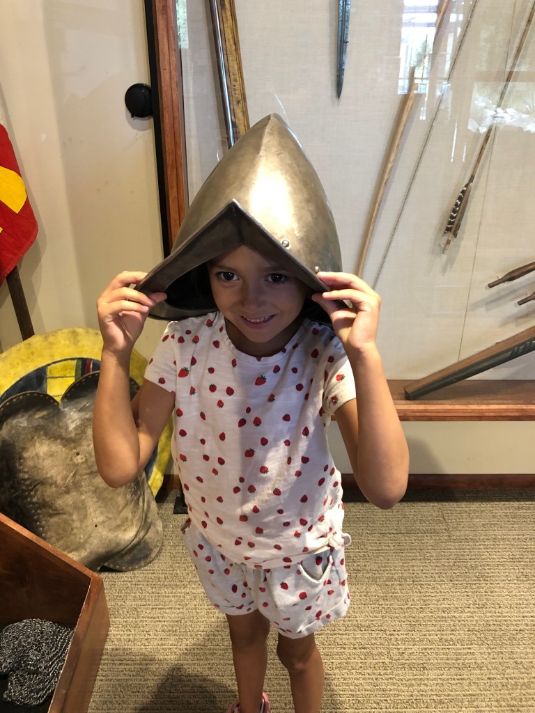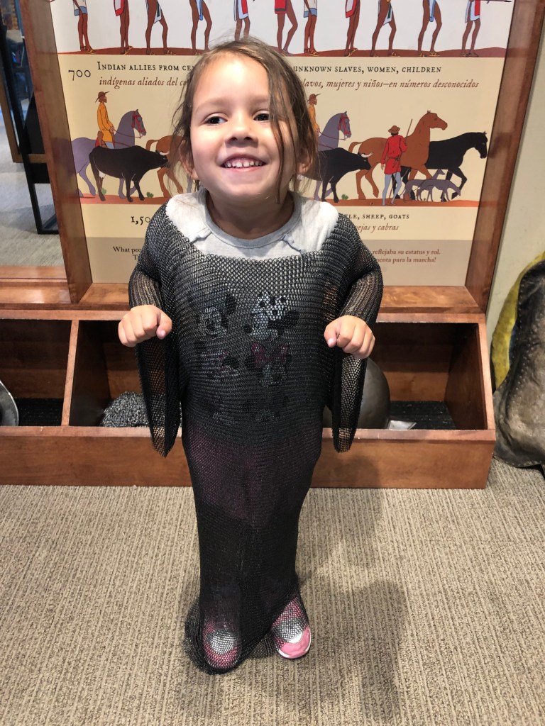 Even though the visitor center is only a one-room building, it is still a very interesting place that houses a lot of information on the Coronado Expedition. While I took interest in the building materials and techniques used by the Spanish in what is now Arizona, the girls became quite enamored with the armor that the Conquistadors wore at the time. Elaina thoroughly enjoyed wearing the Spanish Morion, or Conquistador Helmet, even though it was much too big for her.