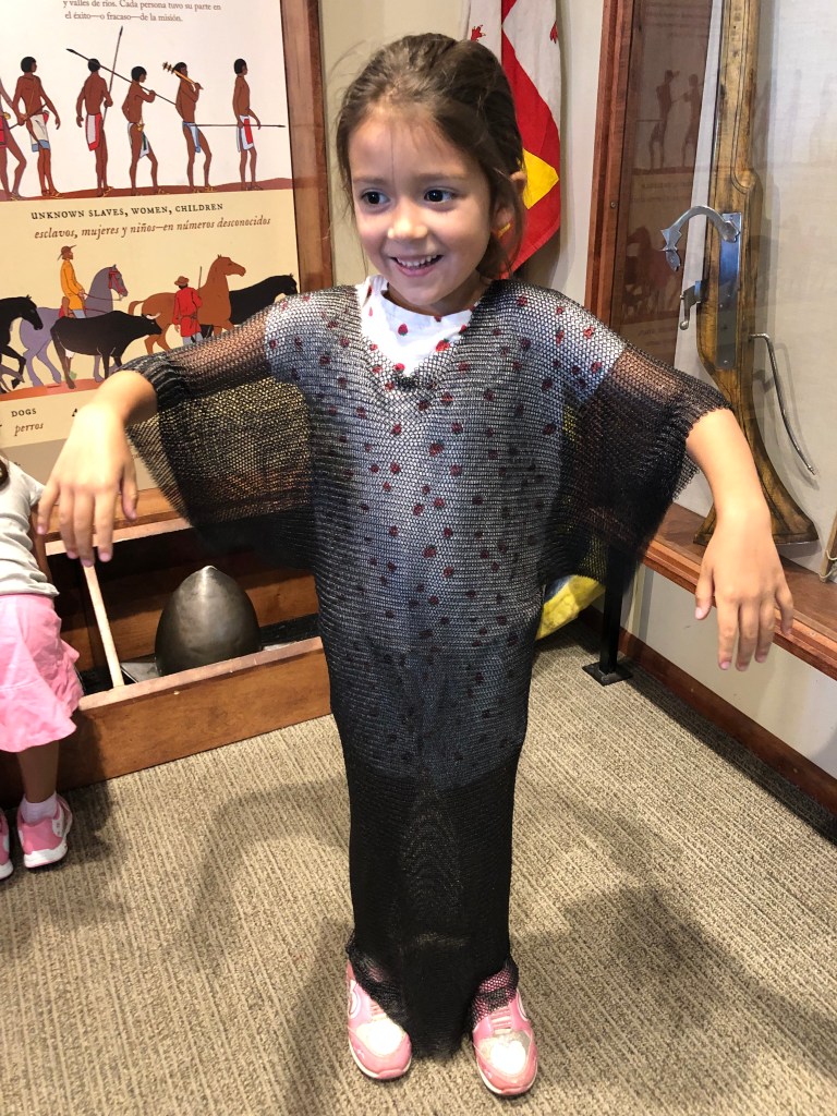The girls especially like the chainmail shirts that were at the center, as they had many different styles and the girls could try them all on. They were a lot lighter than I expected, but that does not mean that I would mind wearing them all day out in the Arizona sun. The visitor center also had a cute little gift shop in the corner, where the girls got to pick up a couple coloring books while I picked up a package of my favorite chocolate in the world (Taza Chocolate Mexican-style chocolate, Vanilla-flavored, which unfortunately melted in the car during our hike).
