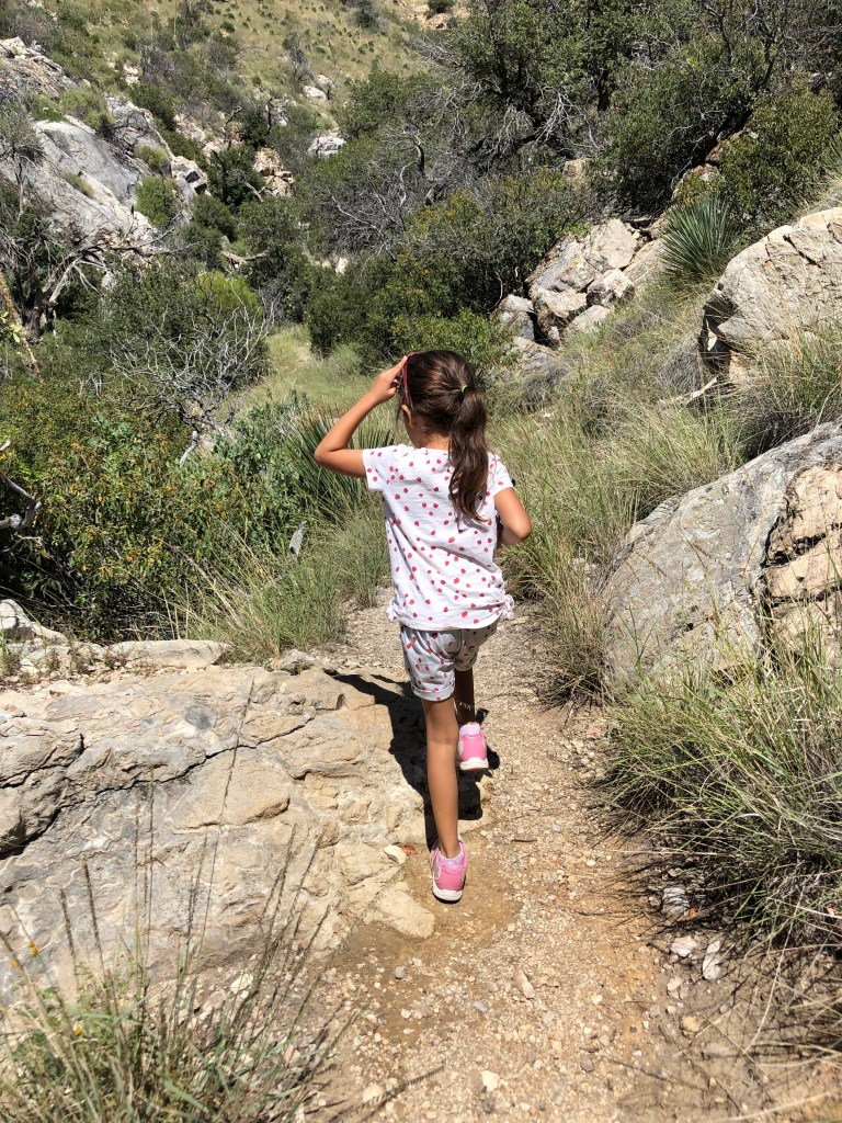 Coronado National Memorial, nestled up against the Huachuca Mountains, is located in Cochise County about 20 minutes south of Sierra Vista, AZ. It is a relatively short drive from our house and it seemed like just the place to hike for a few hours with the girls. And since I had been on the hike to Coronado Cave before, I knew that I was not going to get surprised by steep cliffs or dangerous trails. As per the routine, we stocked up on snacks, water, sunscreen, and Band-aids before we headed out to the visitor center (you can never be too prepared).