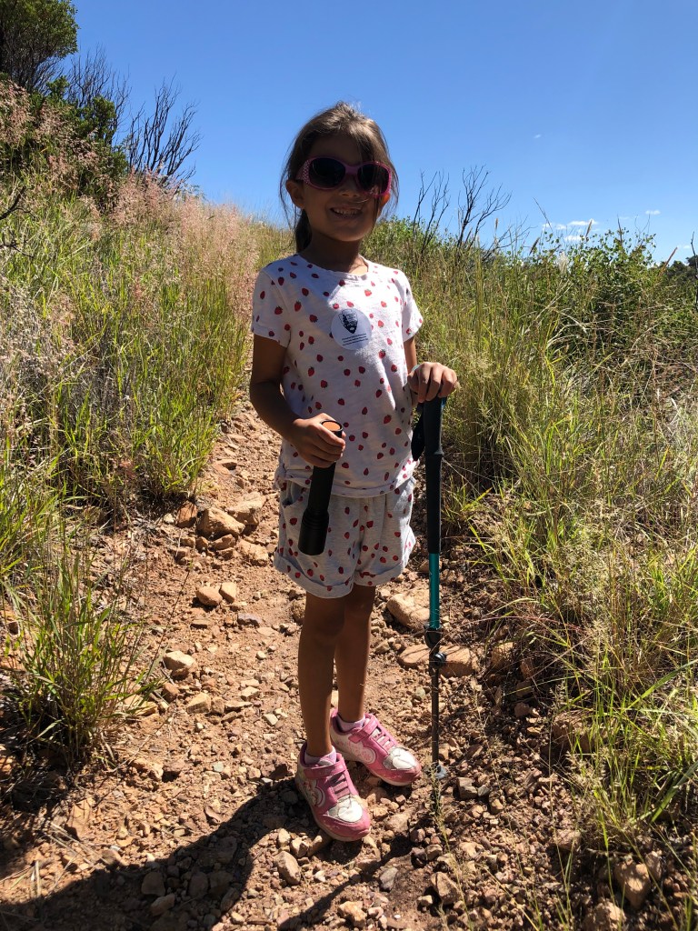 We were just going to take a short couple kilometer hike up to Coronado Cave, heading inside if the girls were up to it. Elaina grabbed her walking stick and headed up the hill towards the cave.