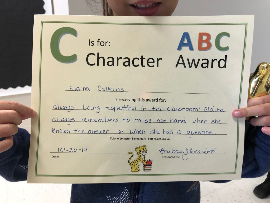 While only other single fathers (or even single mothers, for that matter) can answer if I met my second goal, I can with absolute certainty say that this first goal was a success and it exceeded my expectations. From our amazing trip to Walt Disney World to our weekly adventures in the greater Sierra Vista metroplex to our lazy days around the house, we are showing day after day what a loving, caring, and fun family looks like. And if this was not enough, Elaina got recognized at school this week.