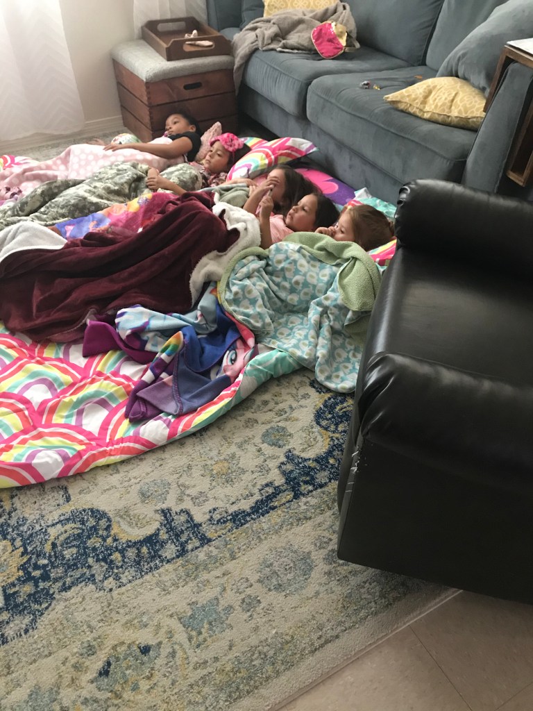 As the time and their energy levels both winded down, they all cuddled up on the floor and watched a movie. I picked them up after six hours, with them telling me about the play date for the entire two minute drive back to our house. Seemed like they had a good time, which meant that I had a lot of work to do before hosting the play date next weekend.