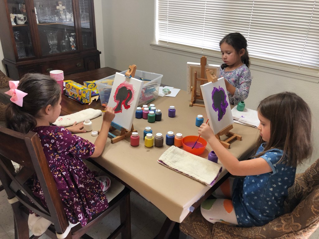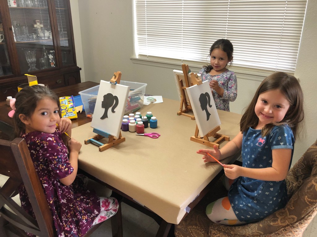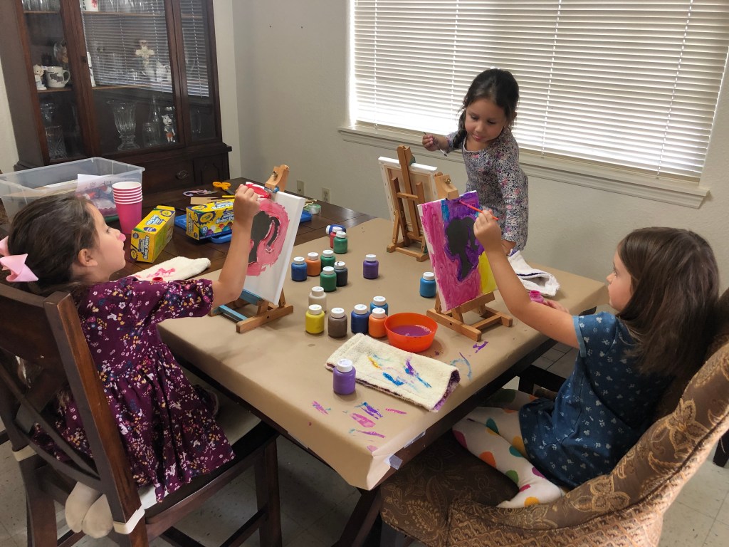 After lunch, we moved on to our next activity: Painting. I got out the easels, canvases, brushes, and paint before Elora arrived, as each one of them loves to paint.
