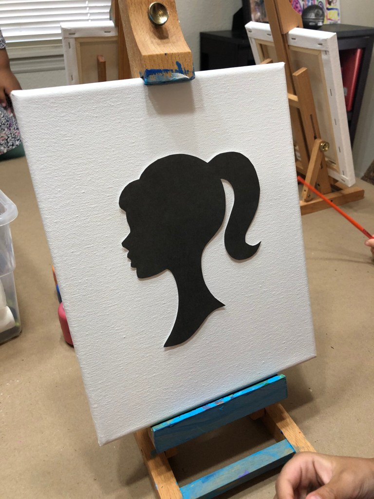 After they are finished covering the canvas with their paint(s) of choice, wait for it to dry then take the cutout off.