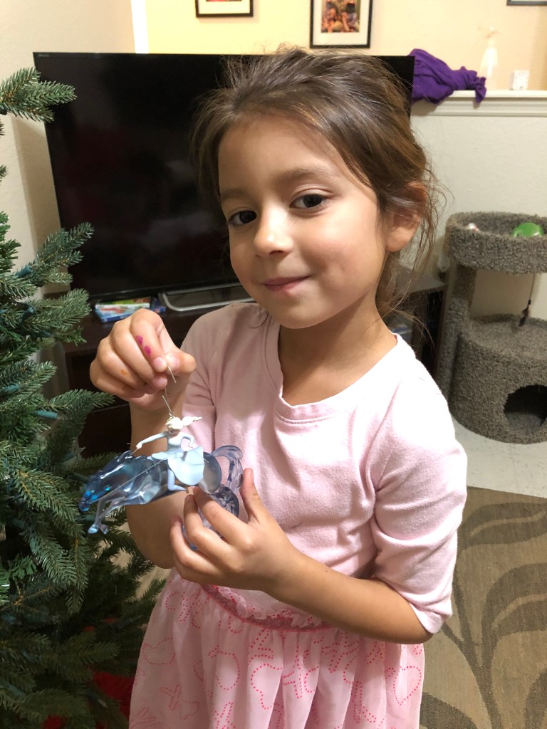 Elaina started the decorating with an ornament they picked out only a few hours before, one of Elsa from Frozen II.