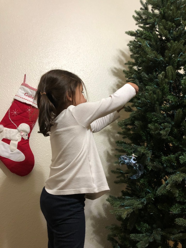 With that, we started alternating who got to pick an ornament and put it on the tree.