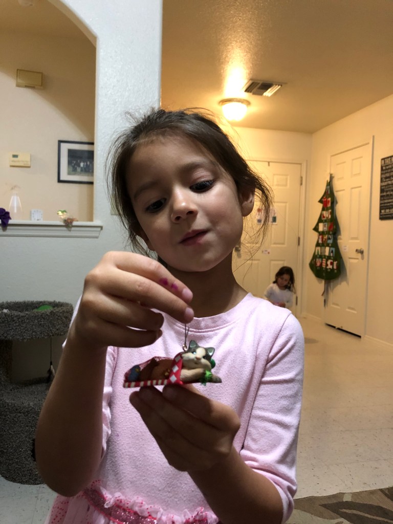 Elaina picked out a kitten ornament to celebrate the arrival of our new cats.