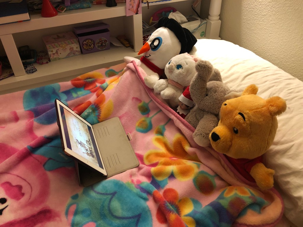 She has already gotten into some crazy shenanigans this season (she stayed up all night watching Disney+ with their stuffed animals last night) and is sure to get into some more trouble before Christmas arrives.