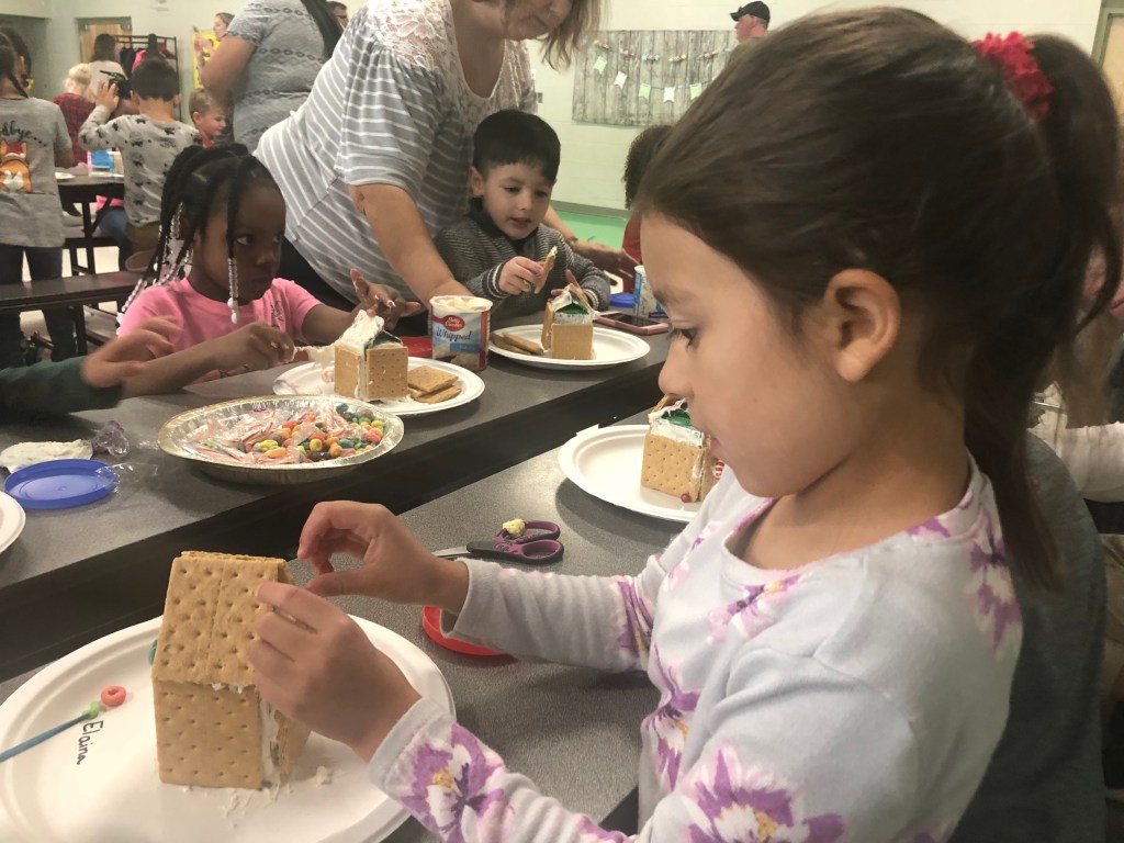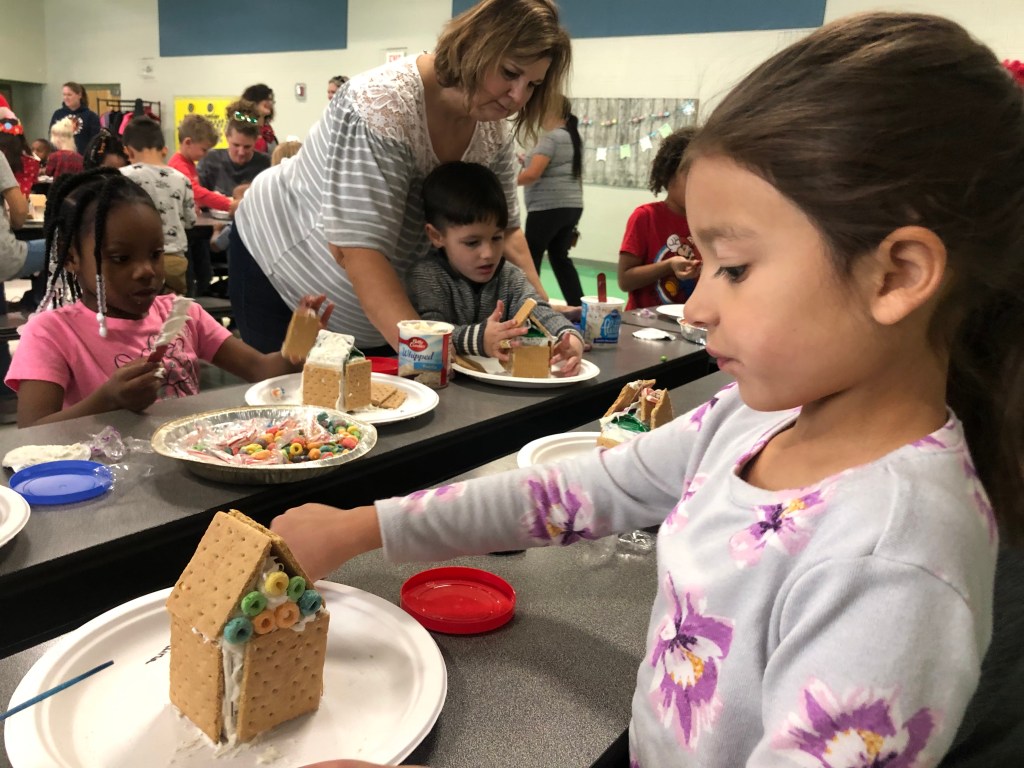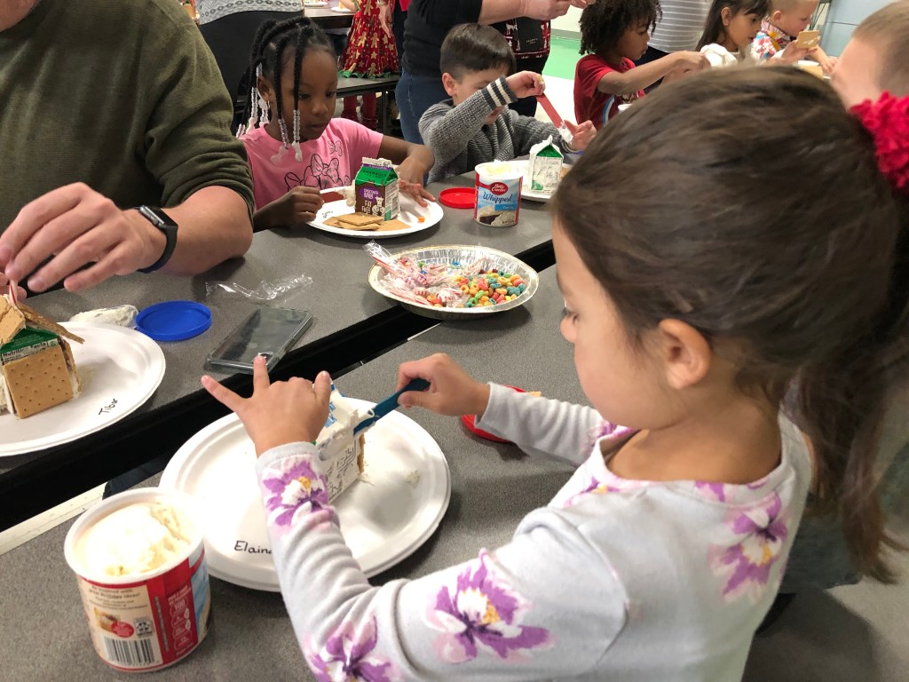 Prior to the winter break, Elaina’s class had a “gingerbread” house decorating activity, of which parents were invited. While Elaina begged me to go, it was all in vain; as I have stated before, I would not have missed it for the world.