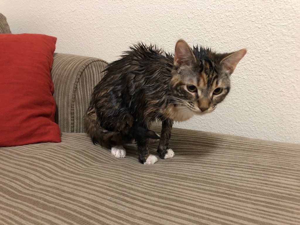 While we tried our best to dry them with towels, they eventually both escaped and just wanted to be left alone. It took about an hour for the cats to warm up to us again, because they were definitely not happy with us after the bath.