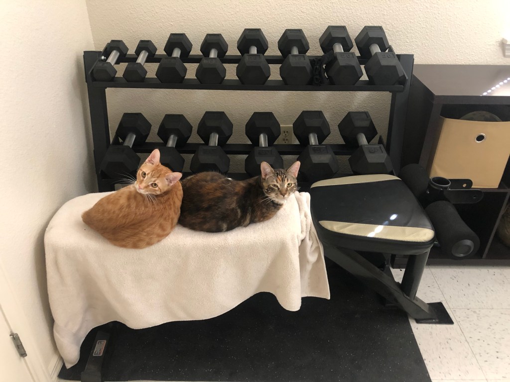 They have fallen a few times though, so cats may not be as sure-footed as advertised. At least I will always have my workout bench to fall back to.