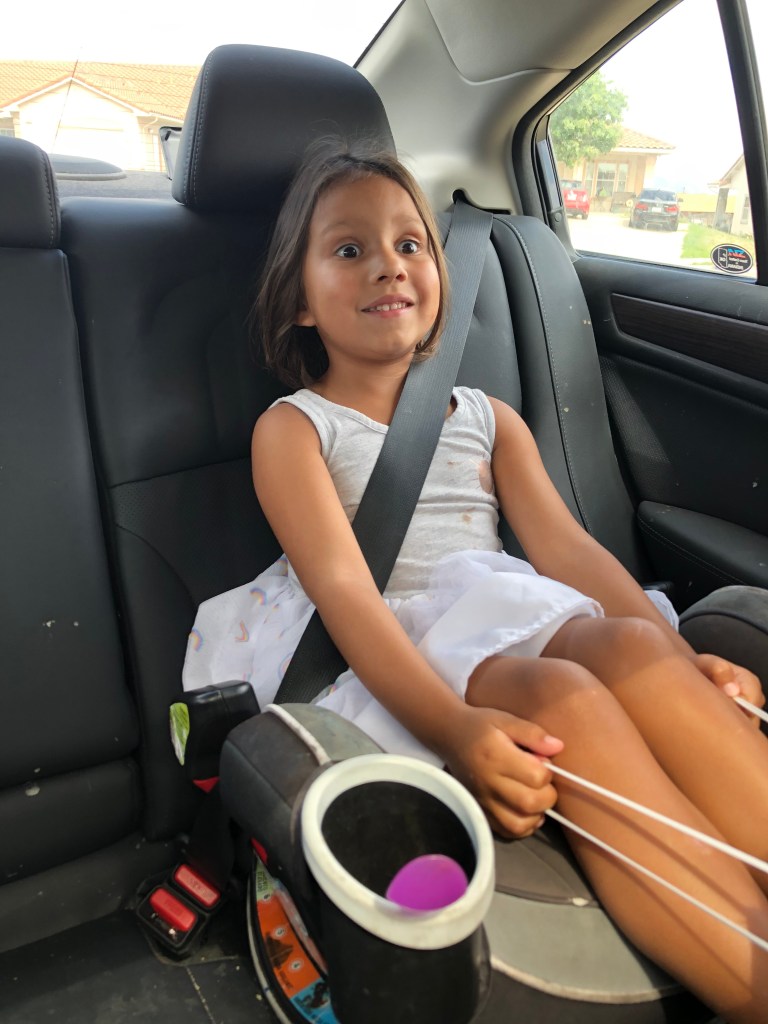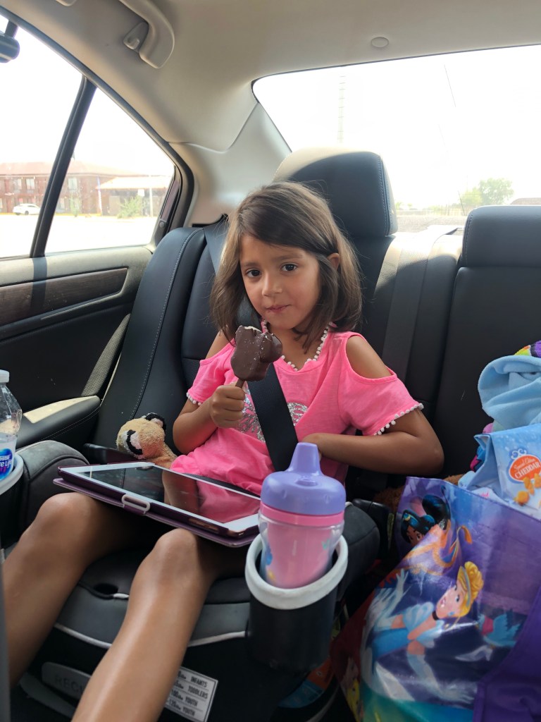To say the girls were happy to see me would be an understatement. In fact, it was a little difficult to pry them off me so that their mother could say goodbye to them. While it was amazing to see them and have them back, I try to be respectful to their mother by giving her ample time to say goodbye, as drop-offs certainly have to be difficult for her. Armed with their toys, tablets, snacks, and several activity books, the girls were ready for an easy trip back.
