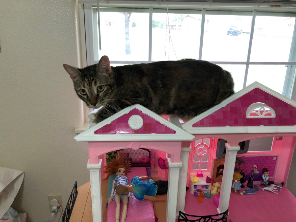 When we got home, in complete defiance of my instructions, the girls ran inside the house screaming for their kitties. Predictably, it took the cats about 30 minutes to come out from under the bed. After that, the cats would just not leave them alone, which the girls loved.