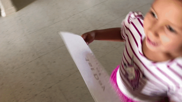 Since I had already been in contact with their teachers, they let me know what the girls should be looking for to find the right classroom. Gabriella’s classroom had a green frog symbol out front, while Elaina’s had a “Welcome to First Grade” banner on its bulletin board. I printed off matching symbols on cardstock for the girls to reference so that they could find their classrooms easier (later that day, they were quick to tell me that the signs did nothing, as they were escorted right to their classrooms… I tried).