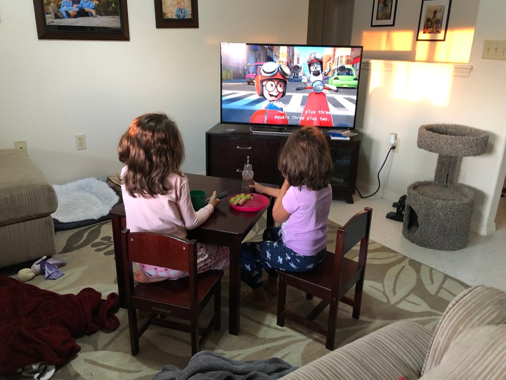 After I served Elaina her egg sandwich and Gabriella her sausage links, grapes, and “healthy” chocolate milk, I let the girls watch some television while I double- and triple-checked their stuff for school.