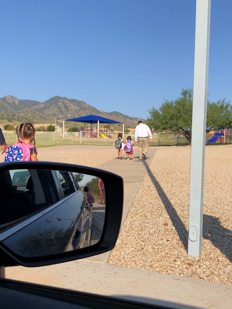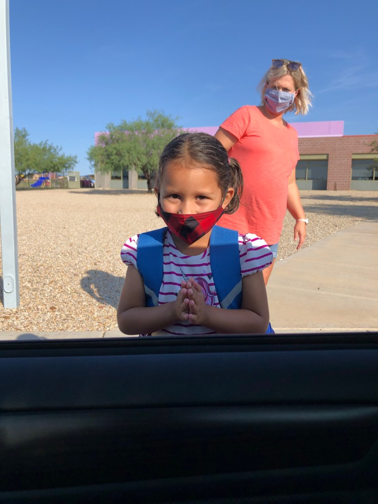 We finally pulled up to the curb, the girls put their masks on, and they hopped out of the car. After I was forgotten by Elaina (I am sure she was just excited), Gabriella turned around to say goodbye to me. I tried my best to keep in the waterworks.