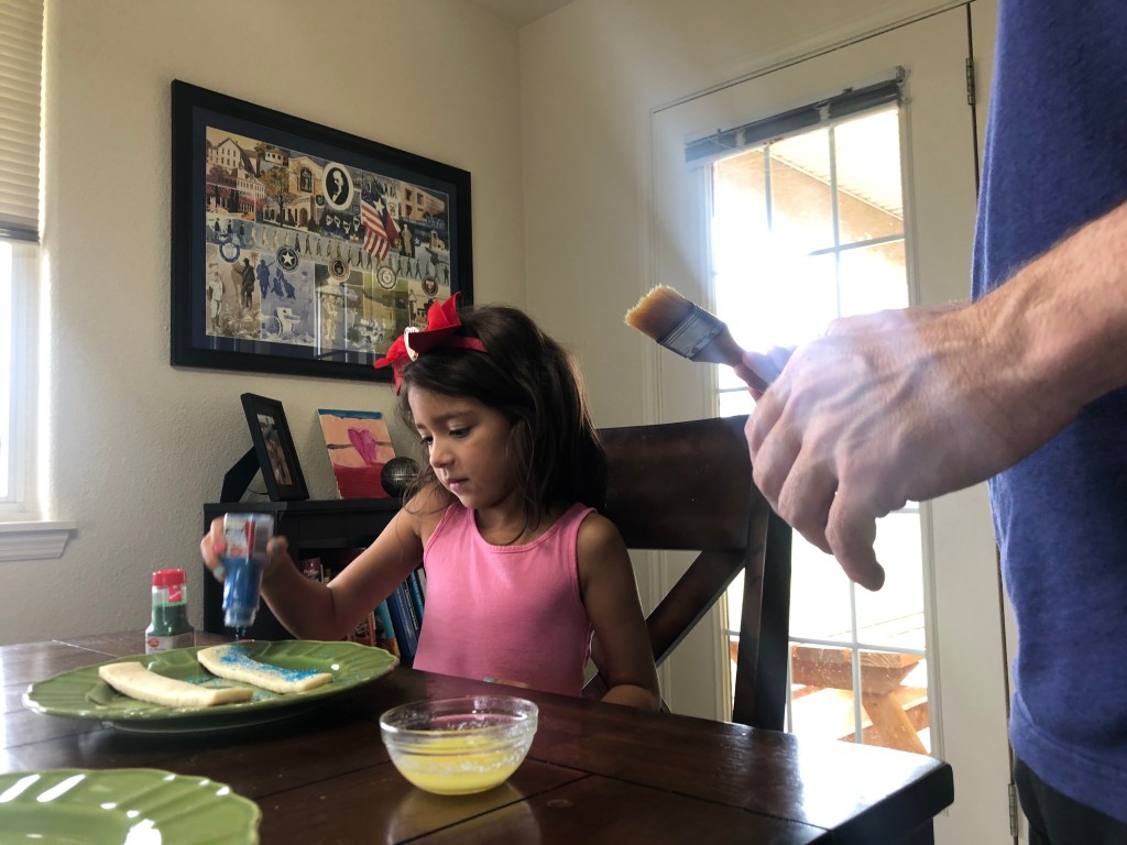 After cutting out the wands and baking them, the girls headed to the table to decorate them. I brushed melted butter on the top of each cookie and the girls starting decorating them with sprinkles.