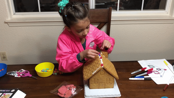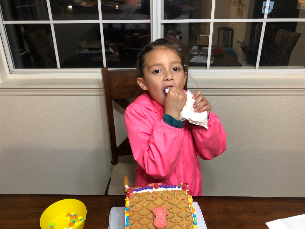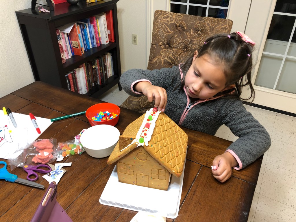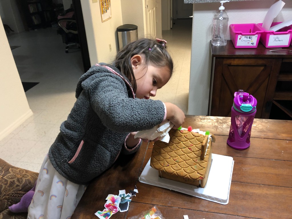 Gabriella really took her time decorating her gingerbread house. I would consider her style more minimalist than Elaina’s. She enjoyed putting the icing on more than anything, but felt obligated to give it a little color.
