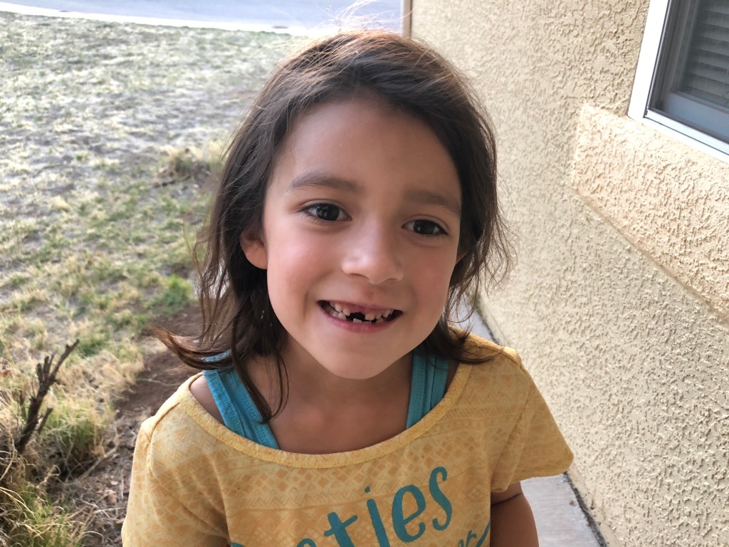 A minute later, walking to their house and about 200 feet from ours, Elaina turns to me and shouts “Dad, my tooth popped out!” Sure enough, it was gone and she grinned at me with a gapped smile.