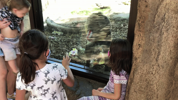While we did not see any Elephants until we made our full trip around their enclosure, the girls were enthralled by the activities on the overlook.