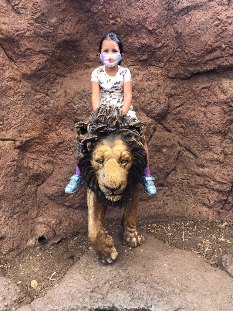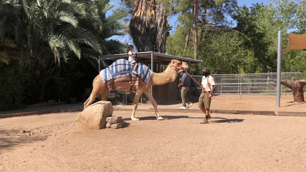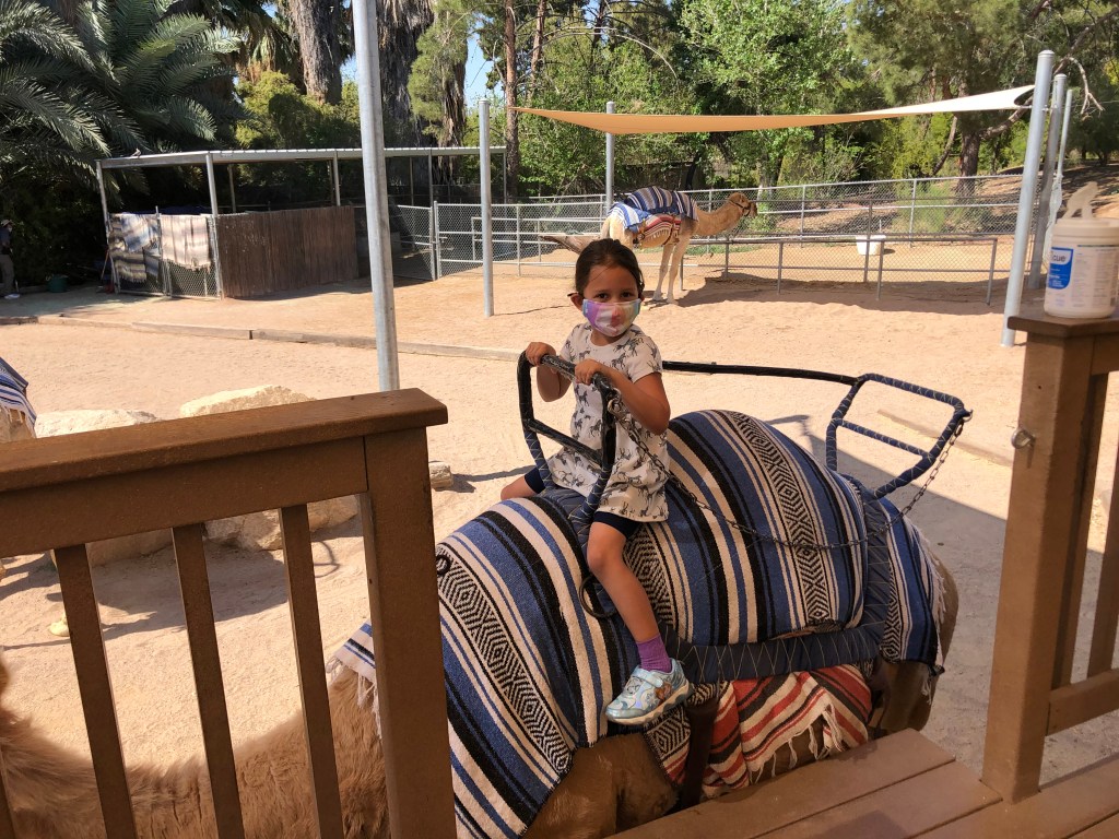 After passing a few Tortoises and some temporarily-closed playgrounds (“Darn you, COVID!”), the girls started to get a little bored and wanted to do something else. So I picked them both up and headed towards the Camel rides.