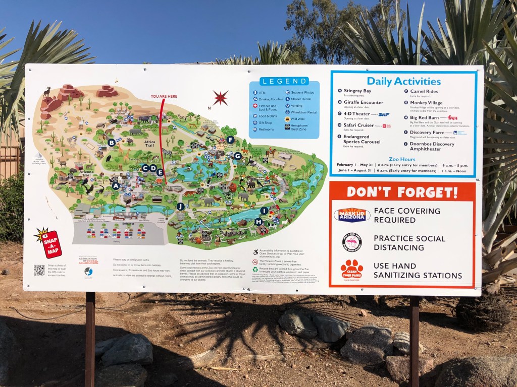 I was happy to see that the Phoenix Zoo was taking COVID precautions seriously. There were signs everywhere telling visitors to maintain social distance and to wear your mask, but everything was themed, so it blended in nicely and did not seem overdone.