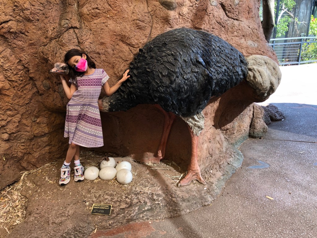 The girls were particularly happy to see a full-sized Ostrich in the exhibit, as it gave them the opportunity to take pictures with it to send to their mother. Their mother is afraid of Ostriches (rightly so), so any trip to the zoo or the Ostrich farm requires a plethora of pictures with the creatures that I have to send, which then requires a follow-up FaceTime call to make sure that she got them and was scared.