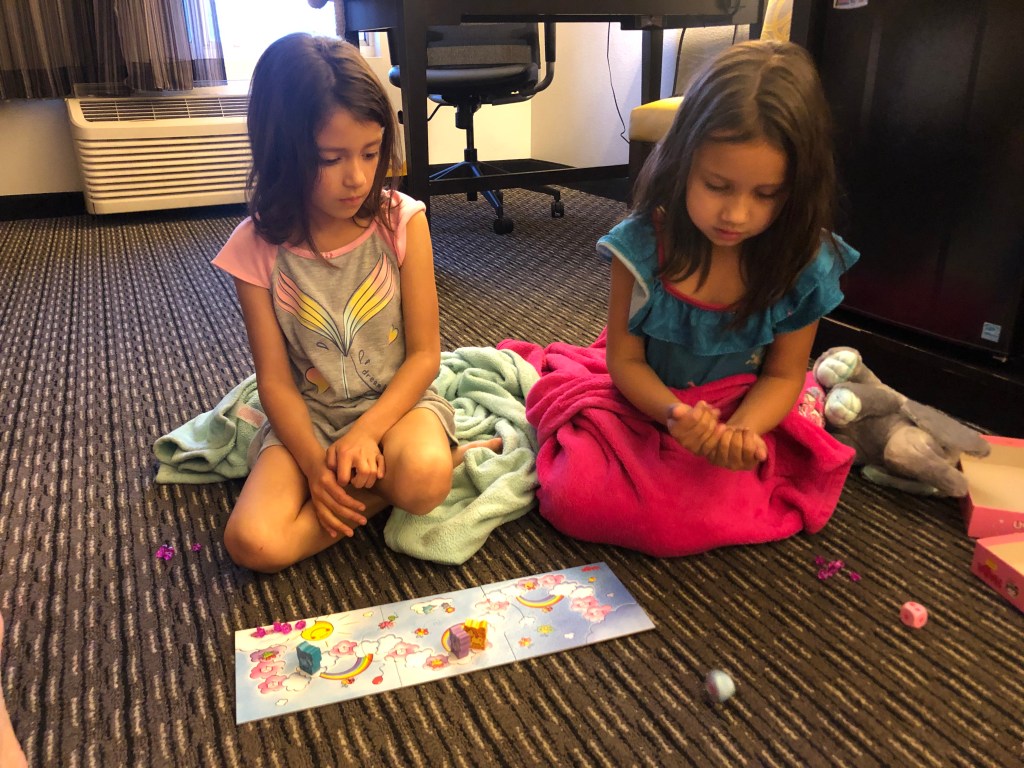 Since the pool was closed by the time we finished dinner, we went straight into family game night. While Elaina and I each took a game of Unicorn Glitterluck, Gabriella simply crushed us at Dragon’s Breath: The Hatchling. I am glad the girls are getting into board and card gaming, but we are still working on good sportsmanship; Elaina needs to learn how to lose gracefully while Gabriella needs to stop rubbing it in to Elaina when she wins. It was good end to a great day though, where we all got to see some beautiful animals and each win a board game. While we have been very active for the last year, especially given the circumstances, we still generally kept to the Fort Huachuca / Sierra Vista area. That is changing now. I am vaccinated, the girls wear their masks without complaint, and we are choosing on venues carefully. Team Calkins is getting out there again and we are definitely being safe about it, both for us and for others.