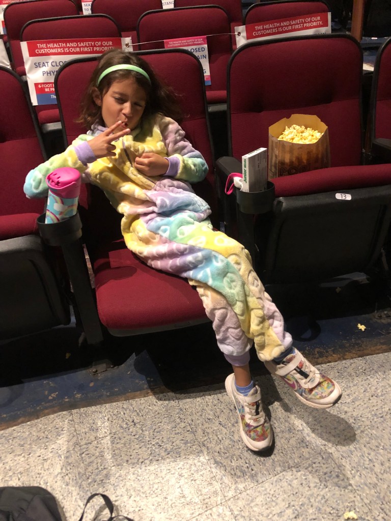 First off, it is always great to go to Pajama Night at the on-post theater. The girls love dressing up, they love seeing all their friends dressed-up, and the popcorn continues to be the best in the world. So a good time was almost guaranteed to be had by all. And I had learned a valuable lesson from the previous week: Do not wear full pajamas when your daughters are both wearing extremely fluffy full pajamas. At one point, Gabriella was on my lap and Elaina was using me as a pillow, meaning that I was getting close to keeling over with heat stroke late in the movie. Shorts and a t-shirt were definitely the right move this time around.