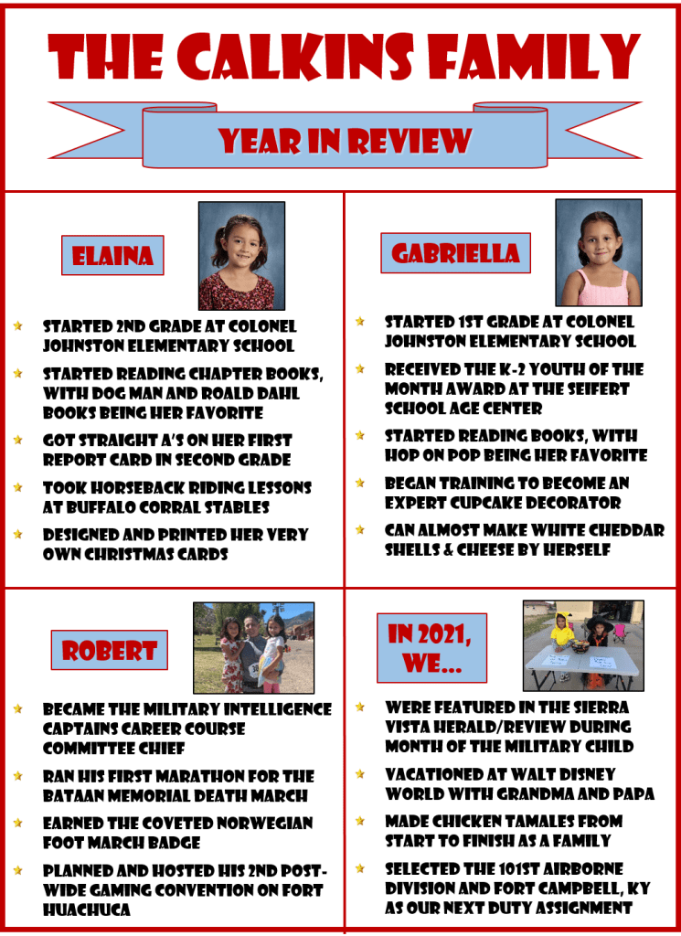 It is that time of year again and we are in full holiday mode. The Elf on the Shelf has been active, the ornaments and stockings have been hung, and the sugar cookies and gingerbread houses have been decorated. Aside from putting up Christmas lights, we went all out again this year in bringing out the holiday spirit as we celebrate our last Christmas on Fort Huachuca (during this tour, at least).