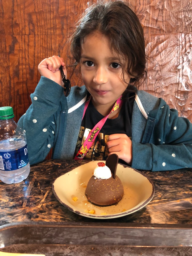 After that peak (no pun intended), we decided to have lunch before heading back to the resort. Elaina had been eyeing one of the desserts on the outside menu and told me that she would eat anything to get it. She chose the Chinese steam buns and destroyed them.